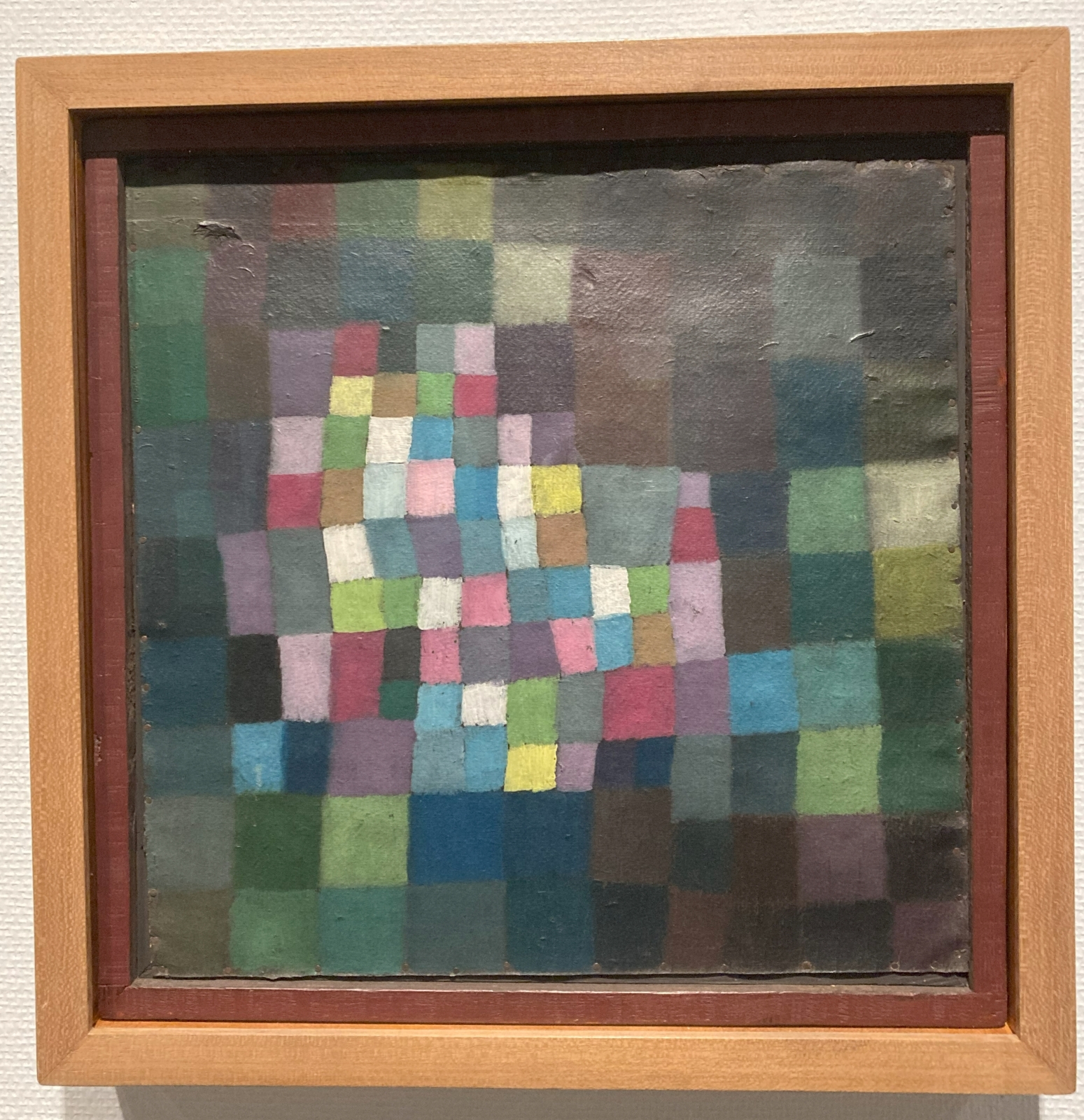 パウル・クレーの「黄色の中の思考」は、新収蔵品。彼の全所蔵作15点が展示されているのだが、ピックアップして、「山への衝動」と、「花ひらく木をめぐる抽象」の写真を載せておく。私としては、後者のような「色面による構成」が、好みである。