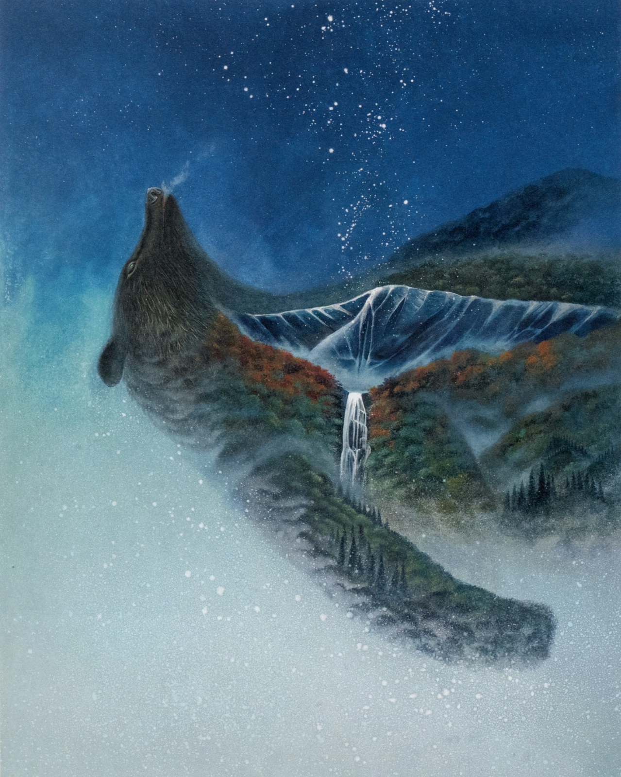 蔡國強の「四季頌歌―春生、夏長、秋收、冬蔵」。永沢碧衣の「山景を纏う者」は、壮大な山々と熊たちの、ダブルイメージ。同じく永沢碧衣の「解ける者」の幻想風景が、結局私は、一番好きかも。