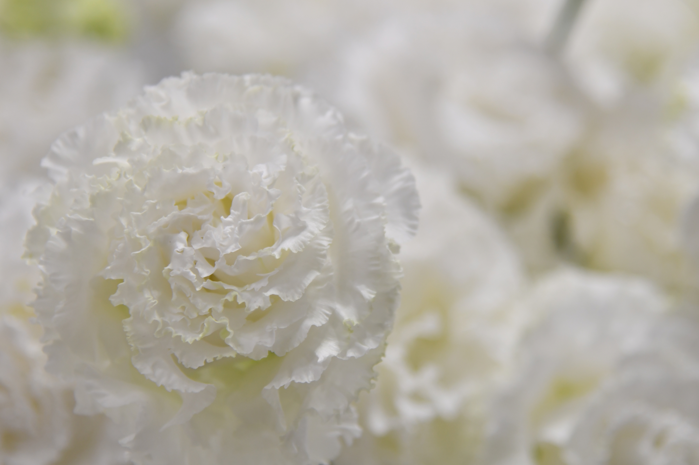 ..こう並べるとトリコロール(三色旗)ですが [;^.^]、それはともかく、白いのはカーネーション(ポーラルート)。バラ。アジサイ(月影(ゲツエイ))。