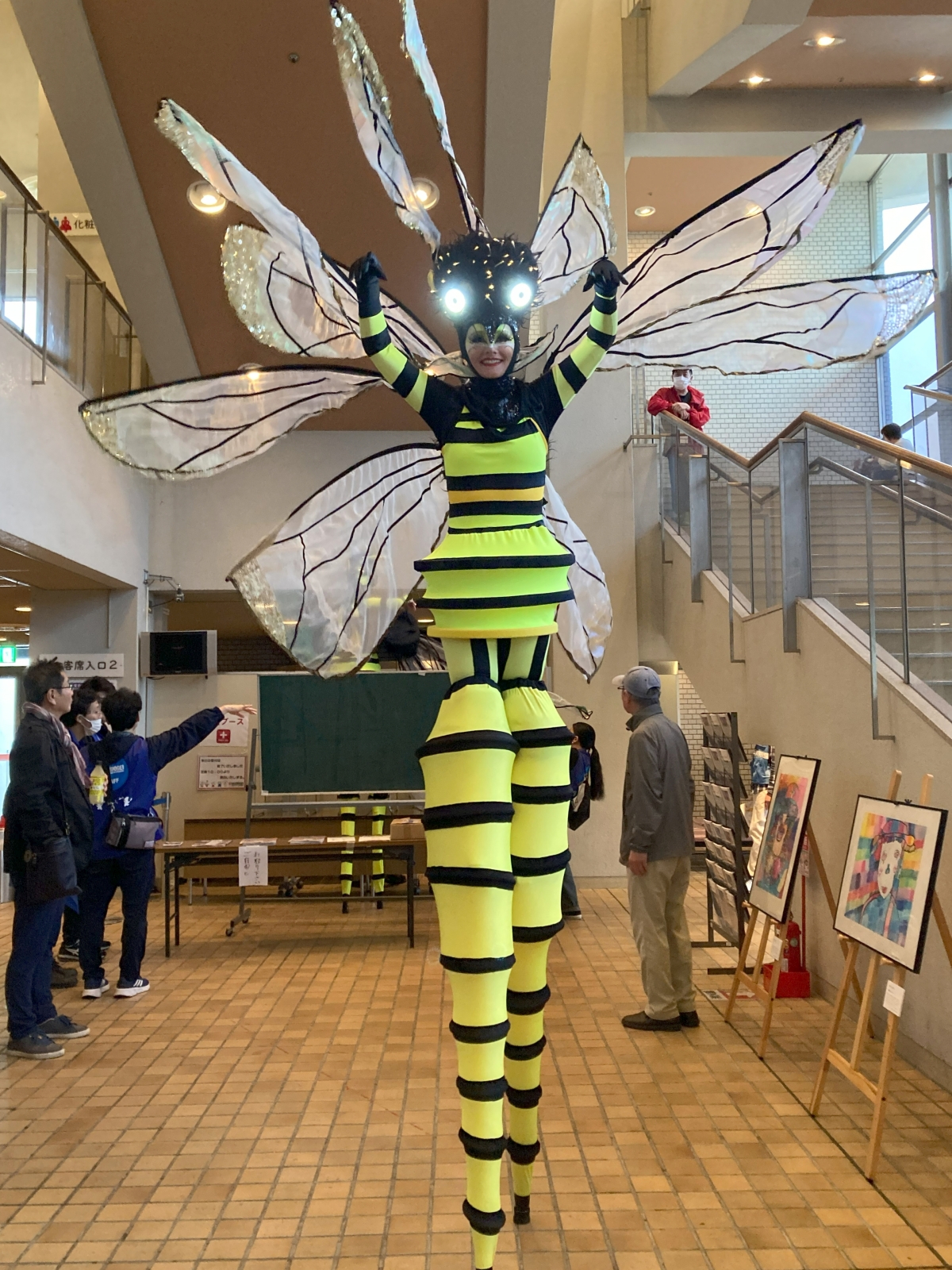 10:15、開場。ロビー(ホワイエ)を歩き回っていたのは、「エンプレス スティルトダンス」。その名の通りの「スティルト(高脚)」芸なのであるが..私見になるが、このジャンルの芸は難しい。ご覧の通り、そこに居るだけで(歩いてるだけで)「映えてしまう」からである。これ以上の研鑽をしなくても投げ銭をもらえてしまうとなると、向上心をキープし難いのではあるまいか。むろん、彼らはここでは単にお披露目しているだけであり、フルセットの芸を披露しているわけではないので、評価は保留しておくが..