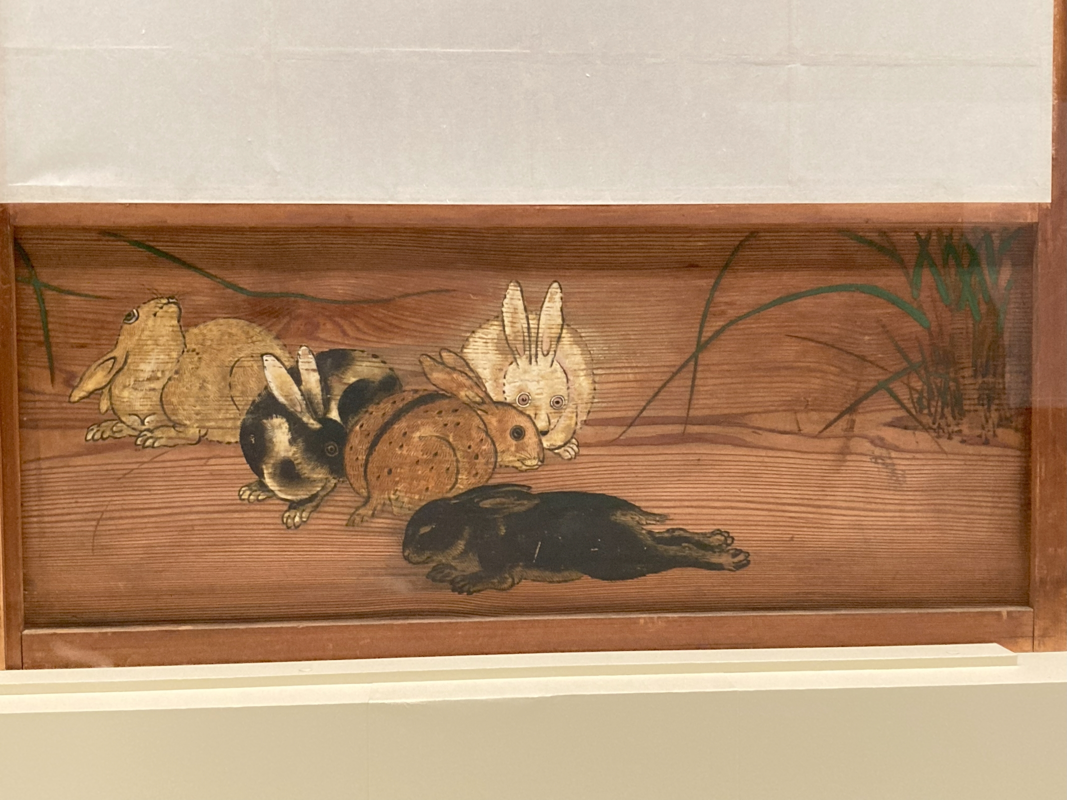左2点は、渡辺始興の「野兎図」。兎がラブリー [^.^]。右2点、伝渡辺始興の「竹林七賢図」。