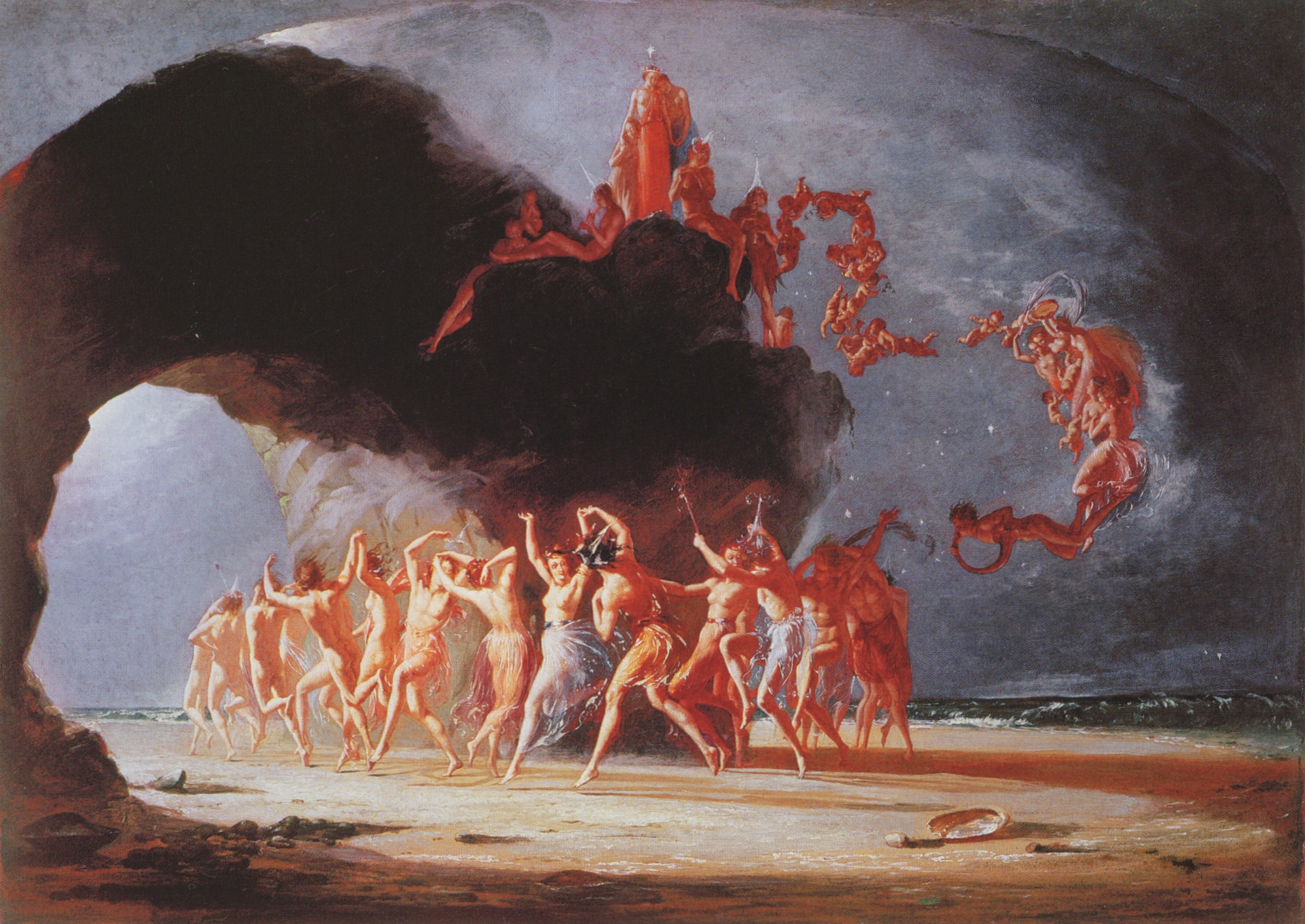 伸びやかに広がる幻想的な舞台。超現実的な光。流れるような、見事なリズムと構図。「妖精のきこりの見事な一撃」の、空気の存在が感じられない、奥行きのない、息詰まるような密集幻想世界よりも、私はこの作品の方が好きである。