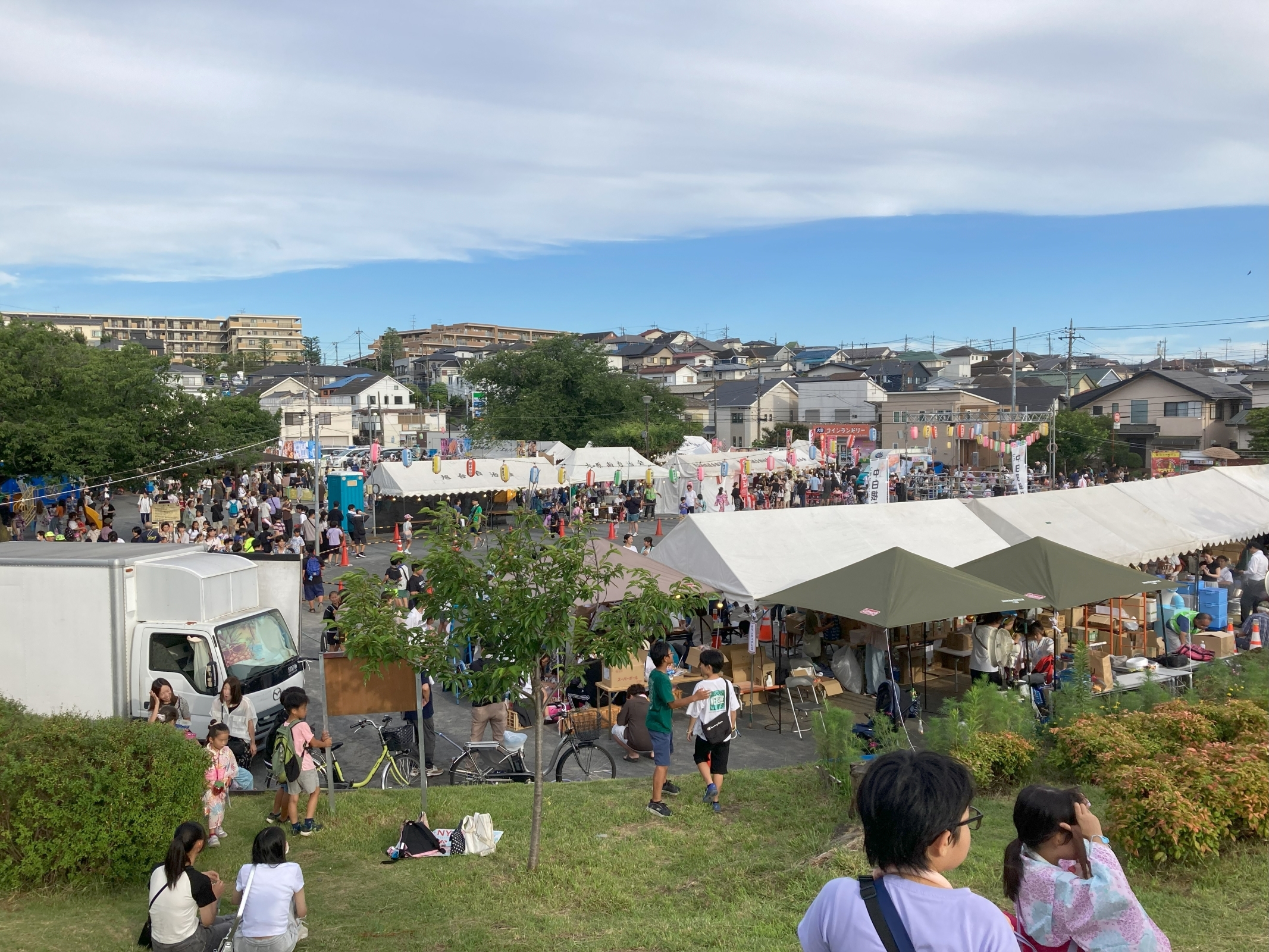 17:05に出て、旭台中央公園。今日が夏祭りの最終日。2日とも快晴で、よかった。今日は担当業務はなく、遊ぶだけ [^.^]。ちなみに今日は一眼レフを持ってきたが、夜景はまだまだ苦手です。[;^.^]