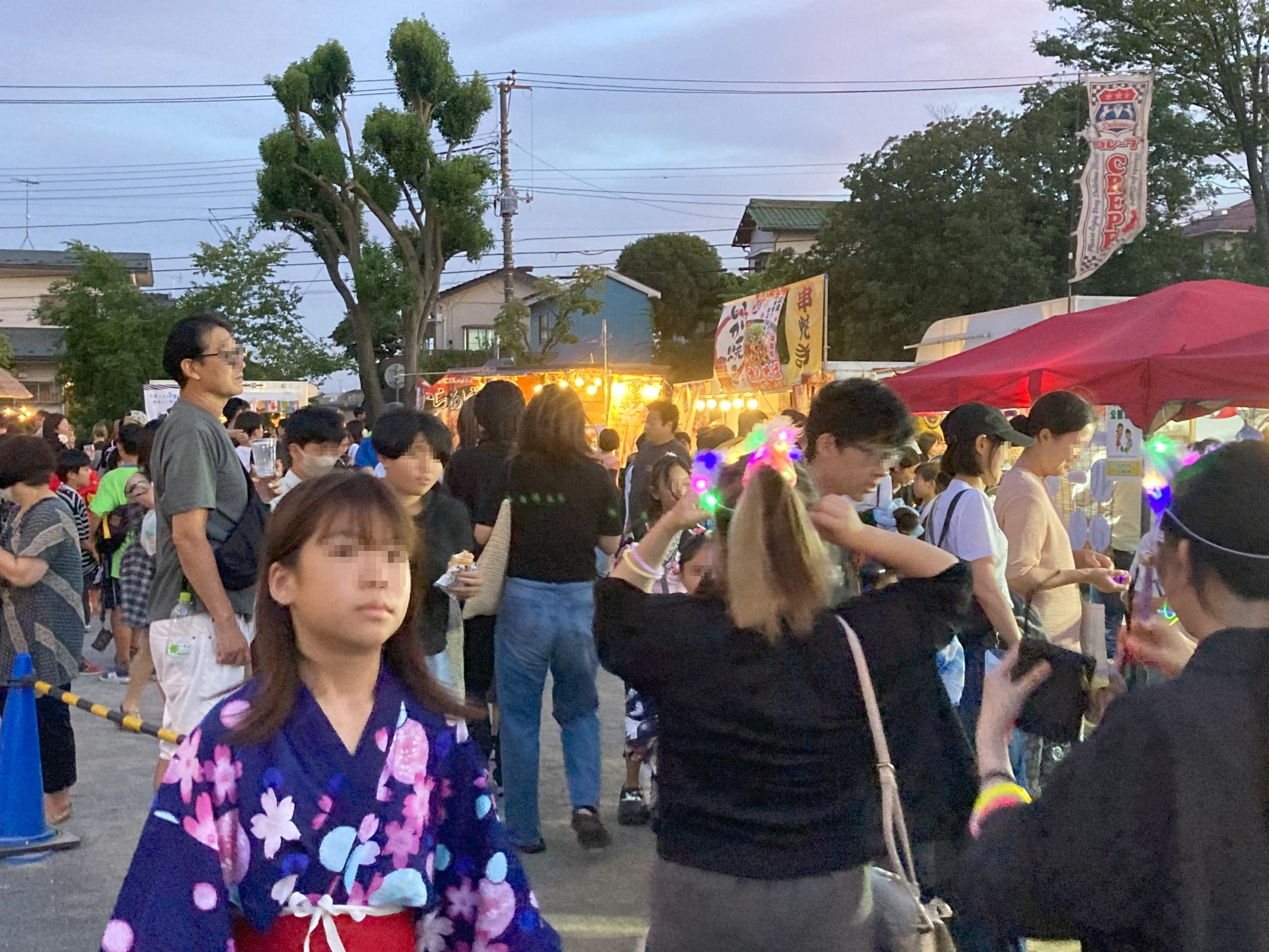 夕方、16:50に出る。自宅から徒歩5分程度の旭台中央公園で、夏祭り。大変な人出である。私の当番は18:00からなので、しばし雑踏のなかを買い食いしつつそぞろ歩く。フランクフルト。オムソバ。以下の写真は、iPhoneSE。