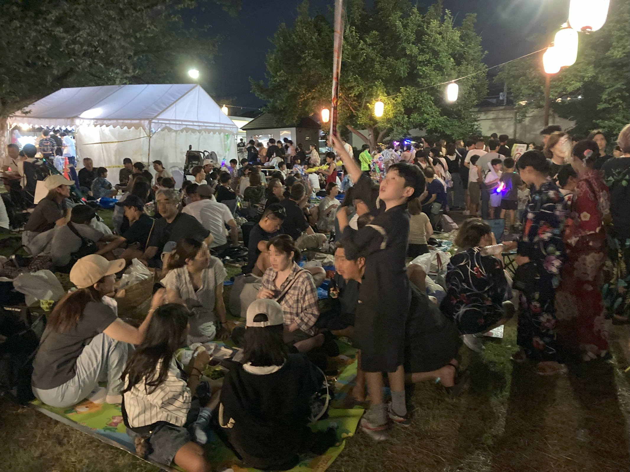 18:15から盆踊り。今日は、小学生のヒップホップダンスはなく、残念。
