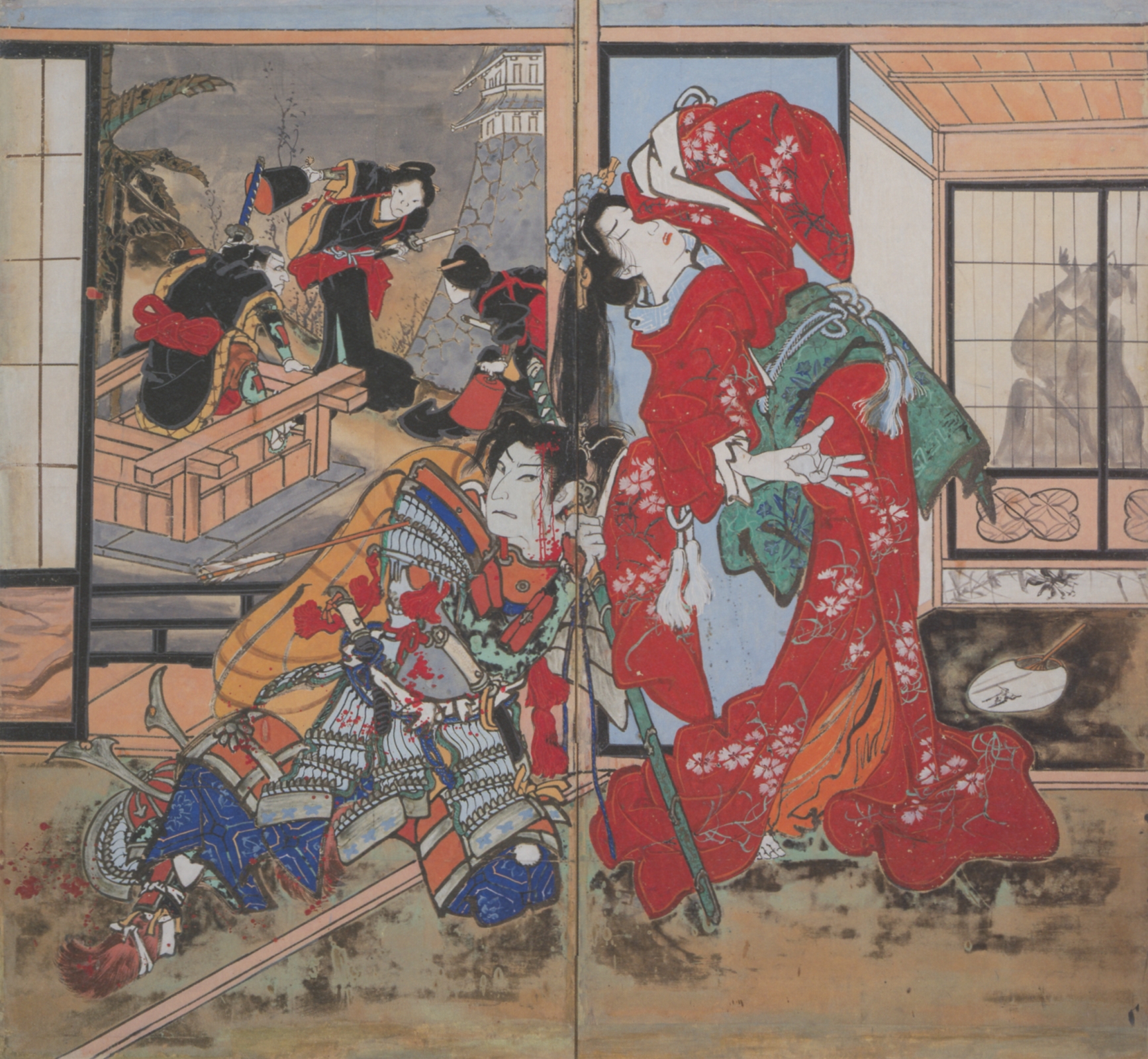 歌舞伎や浄瑠璃のストーリーを極彩色で(しばしば異時同図法で)絵画化した芝居絵屏風がメインの展示であるが、それだけではない。とにかく観ていて楽しいものであるが、情報量が多く、(しばしば複雑な)ストーリーを解説しているキャプションを読むだけでも、時間がかかってしまう。[;^.^]