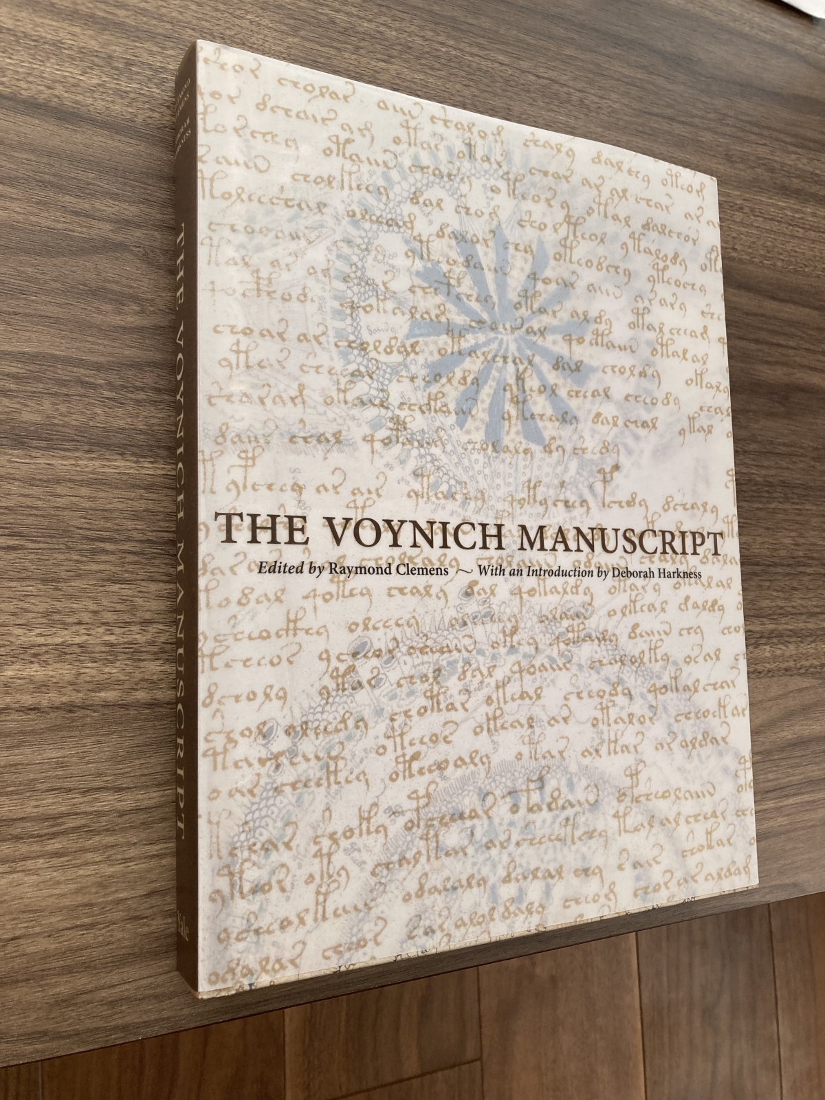 2025年11月04日:「ヴォイニッチ写本」「ヴォイニッチ写本」(Wikipedia、画像検索結果)が、届いた。一部のアレな人 [;^.^] 以外はご存じないかと思うが、意味不明な絵が多数描かれている、いまだに解読できていない奇妙な文字(記号)で記述されている、世界で最も謎めいた写本。以前から「ヴォイニッチ写本 世界一有名な未解読文献にデータサイエンスが挑む」(安形麻理、星海社、Amazon)などの解説書は読んでいたのだが、この際、原本..は無理なので、その精密なレプリカを手元に置いておきたいものだと、ファクシミリ版「The Voynich Manuscript」(Amazon)を購入したのである。