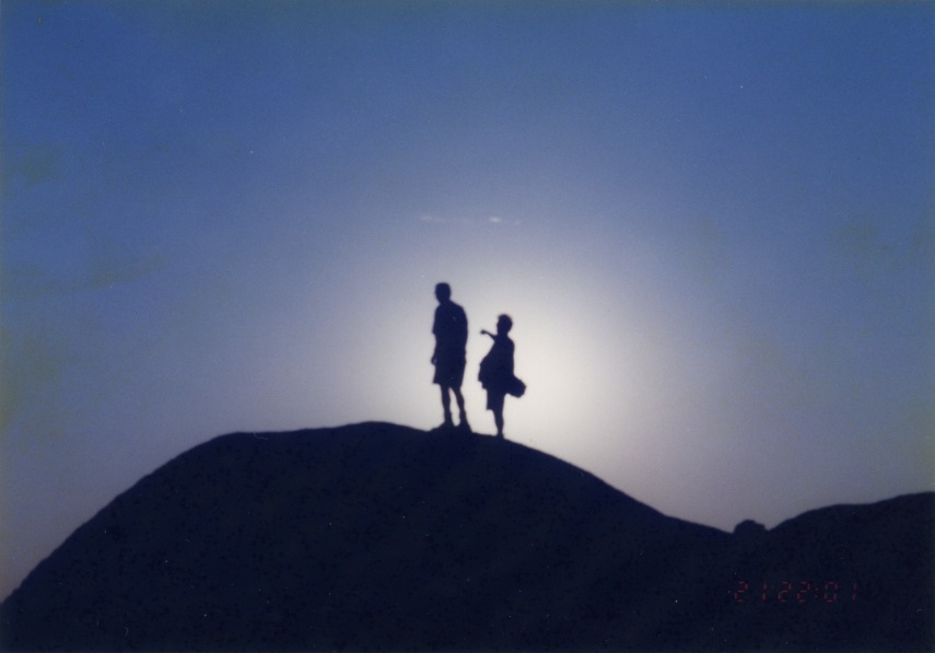 2時間ほども写真を撮りまくってへとへとになった私は、テント設営地の近くの小高い岩の頂上によじ登り、仰向けに寝る。(「火の鳥 鳳凰編」(手塚治虫)の、ラスト近くの我王の姿勢である。)中央アジアの大地を背中で押さえ、雲ひとつない空が、その周縁部からゆっくりと朱色に変色していくのを、ぼんやりと、眺めるともなく眺めながら、うたた寝する。実に贅沢な午睡だ。